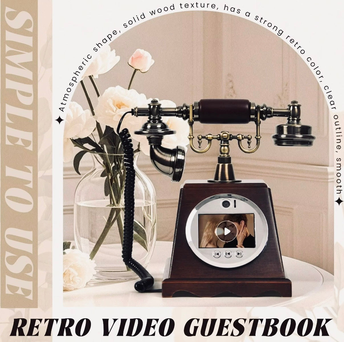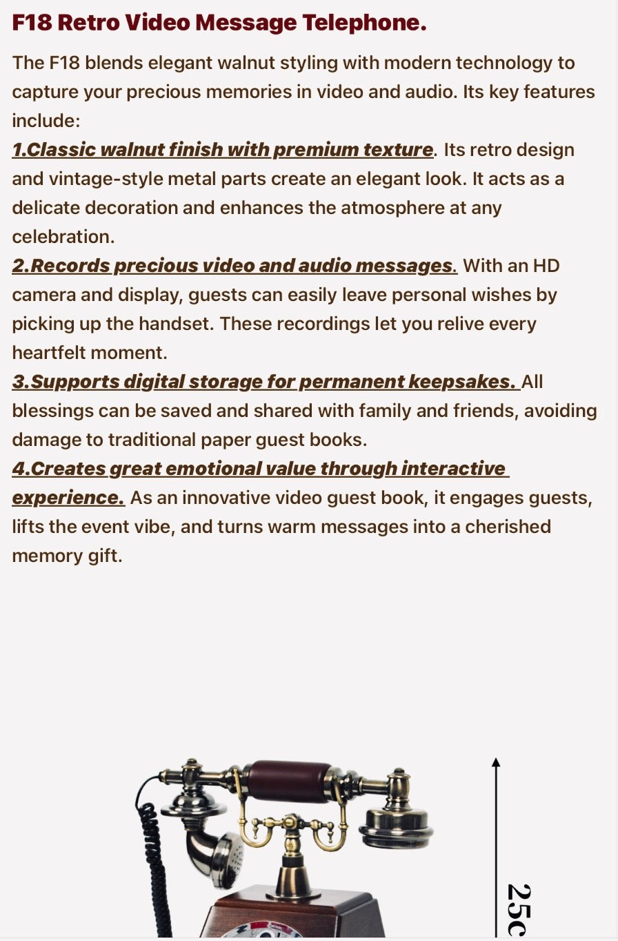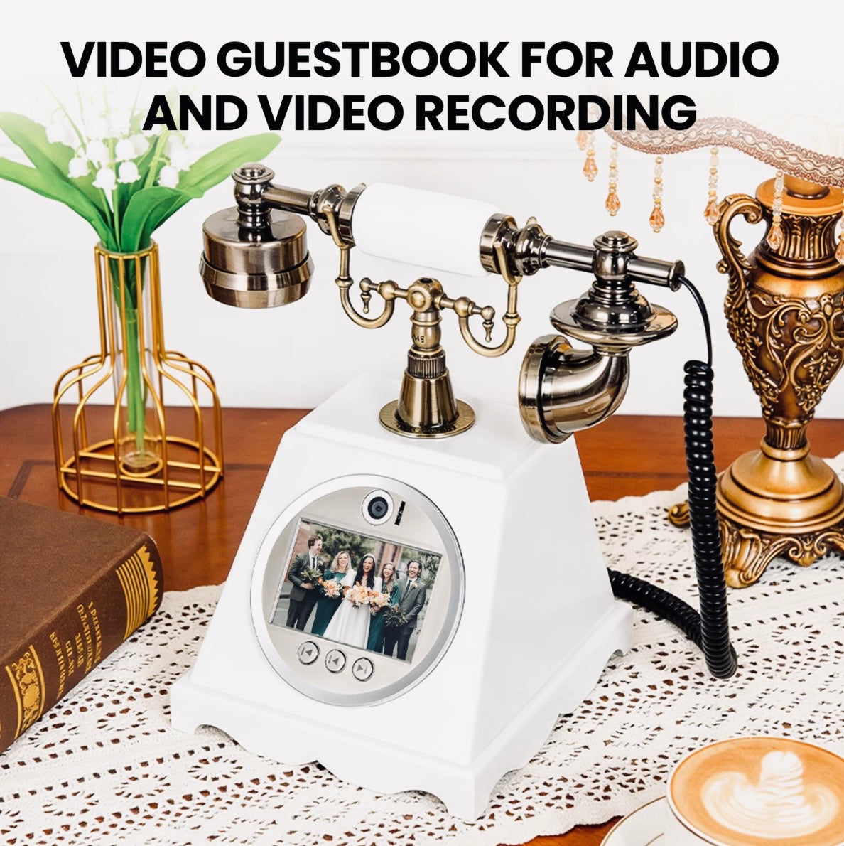 Step beyond the ordinary and into timeless elegance with our Heirloom™ Retro Video Guest Book Phone—a statement piece designed to transform fleeting moments into everlasting memories.