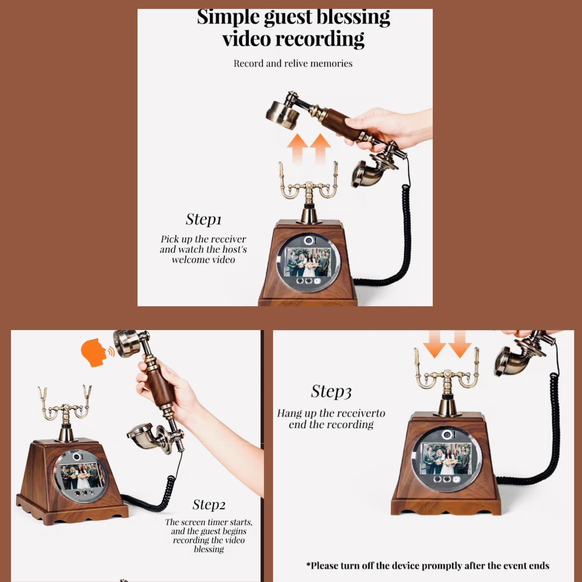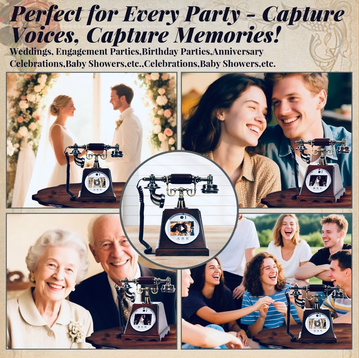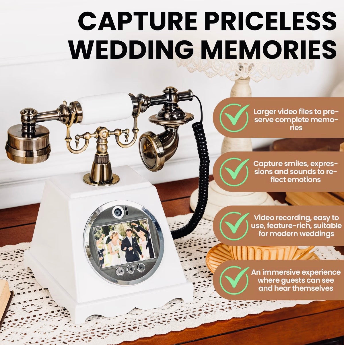 Step beyond the ordinary and into timeless elegance with our Heirloom™ Retro Video Guest Book Phone—a statement piece designed to transform fleeting moments into everlasting memories.