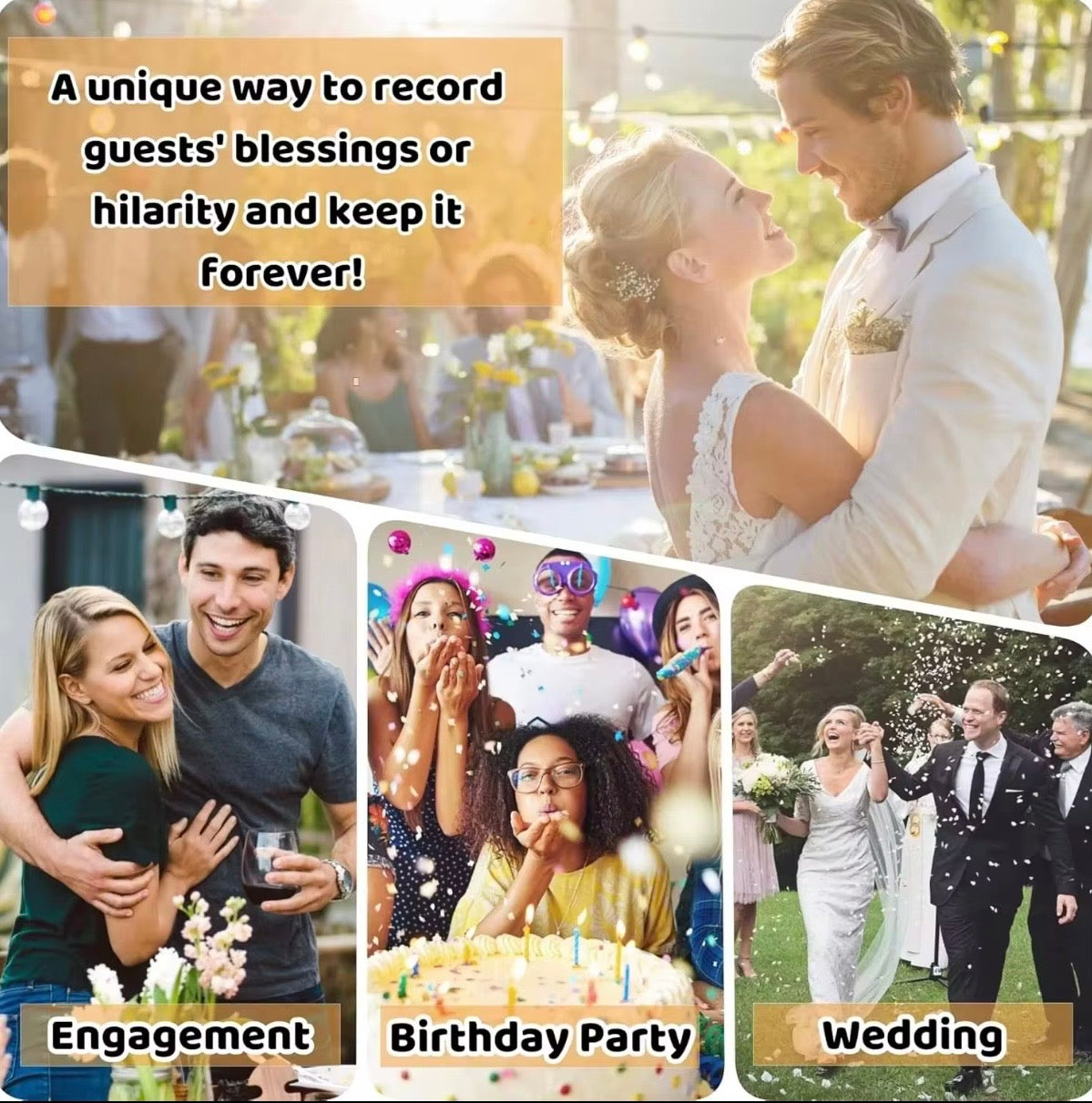 Unlike traditional guest books that fade into forgotten pages, this vintage-inspired masterpiece records both unlimited video, crystal-clear audio messages and photos, allowing you to see the smiles, hear the laughter, and feel the love—again and again.