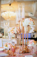 Constructed from robust metal with an electroplated finish, these candelabras resist rust and maintain their shine. Each piece is carefully packaged with protective film on the acrylic shades for a flawless setup.