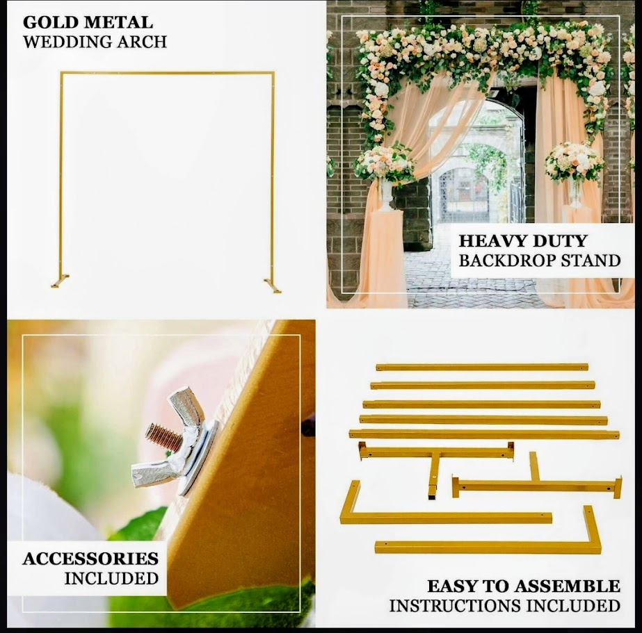 Bring modern elegance to your event with our Gold Metal Heavy Duty Square Backdrop Stand. Designed with a sleek, clean frame, this stand instantly elevates any venue, offering a professional, high-end look for weddings, parties, corporate events, and photoshoots.