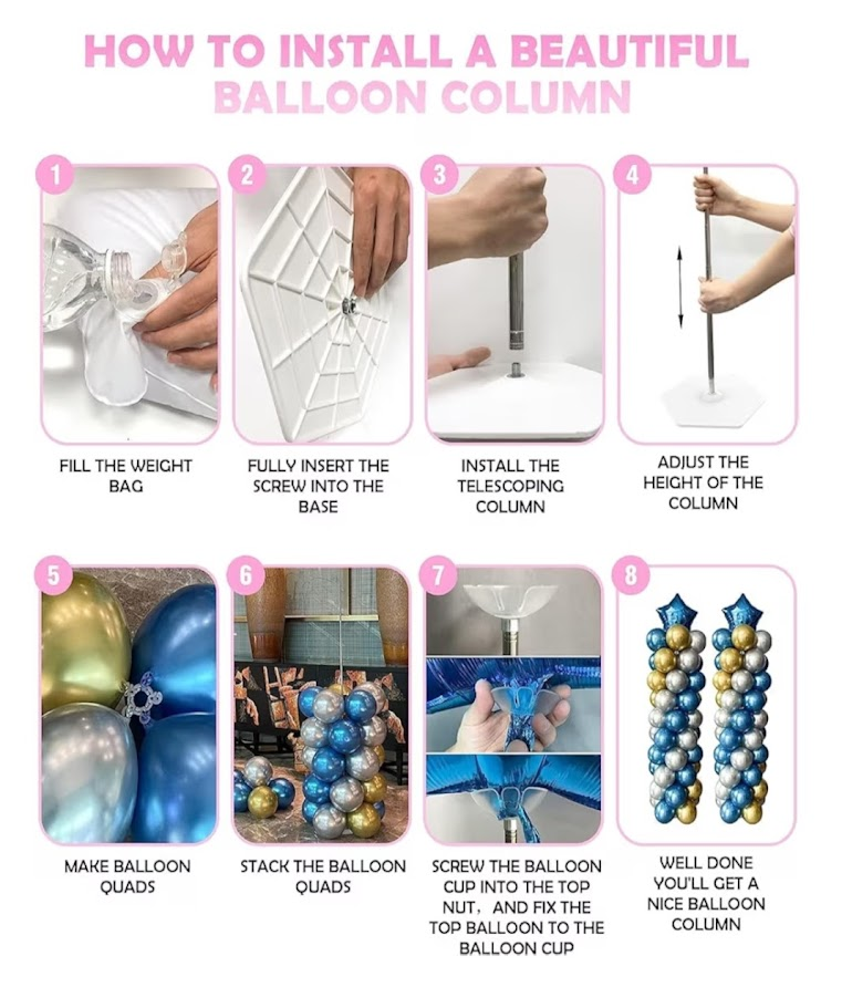 Our Set of 2 Adjustable Balloon Column Stands (50-80") makes it easy to create elegant, designer-quality balloon towers. Perfect for weddings, birthdays, baby showers, corporate events, or any celebration that deserves a wow factor.