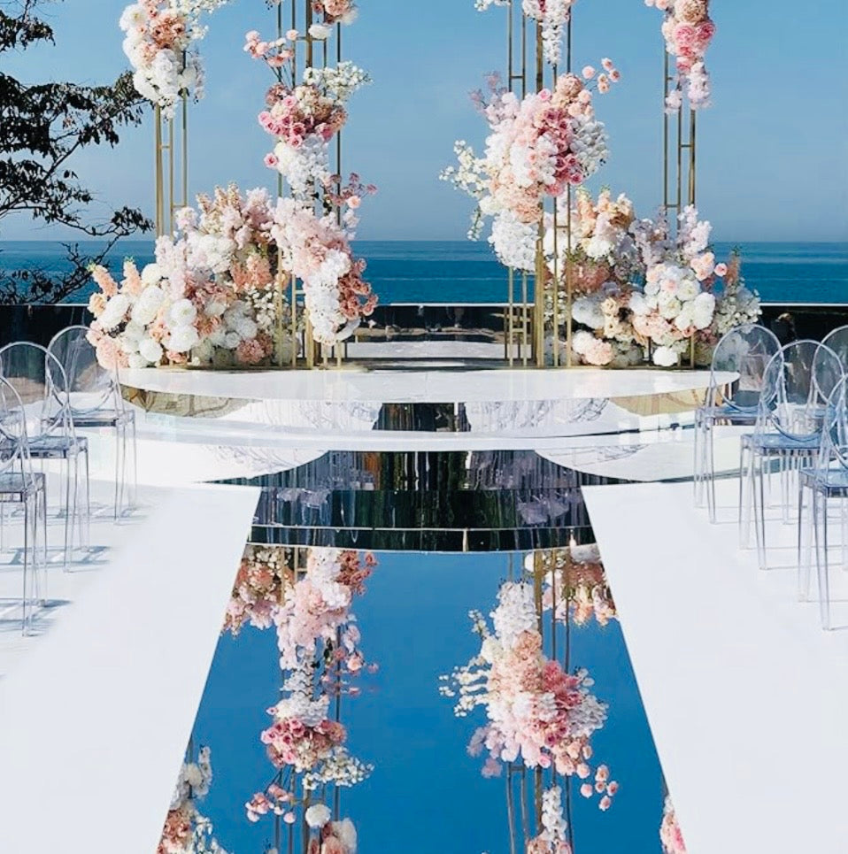 Transform your ceremony into a moment guests will never forget with the Tailor Élevé Wedding Aisle Collection — a statement piece designed to bring elegance, emotion, and unforgettable beauty to your special day. From the first step to the final kiss, our mirrored aisle runners create a breathtaking walkway that reflects your love story in the most stunning way.
